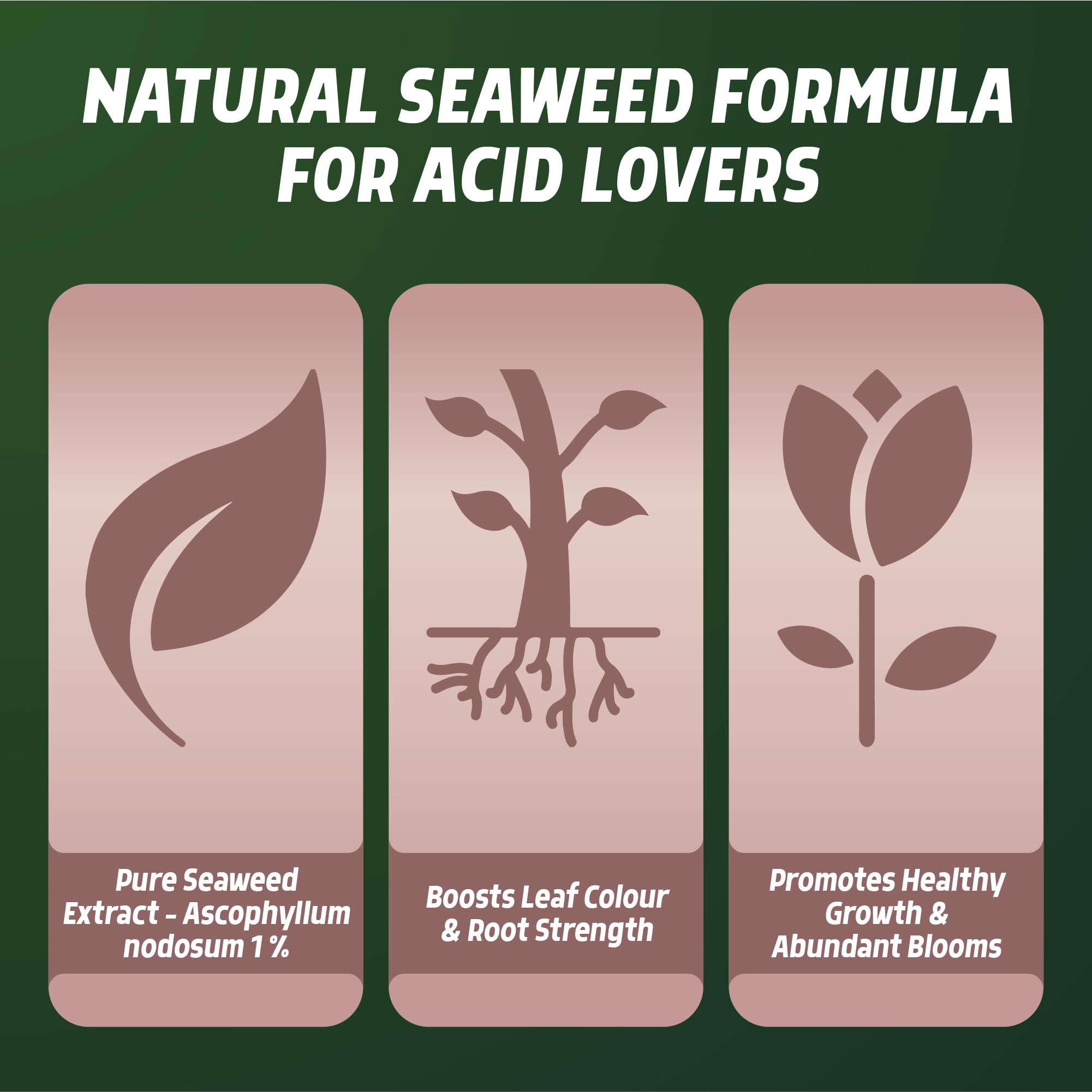 - IDEAL FOR ERICACEOUS PLANTS – Specially formulated for azaleas, rhododendrons, camellias, hydrangeas and heathers. This balanced seaweed fertiliser maintains the slightly acidic soil conditions these plants love, supporting healthy growth and lasting vitality.