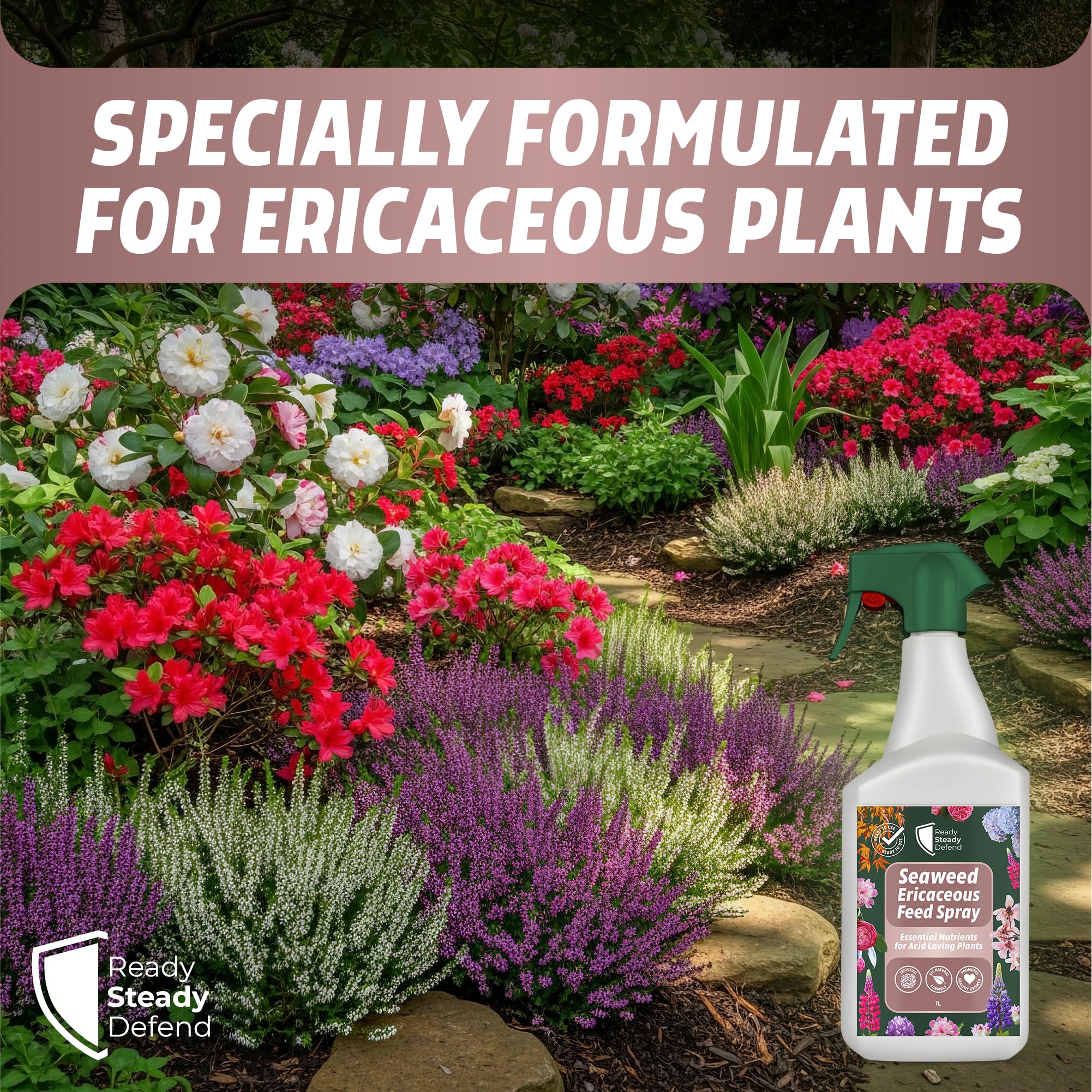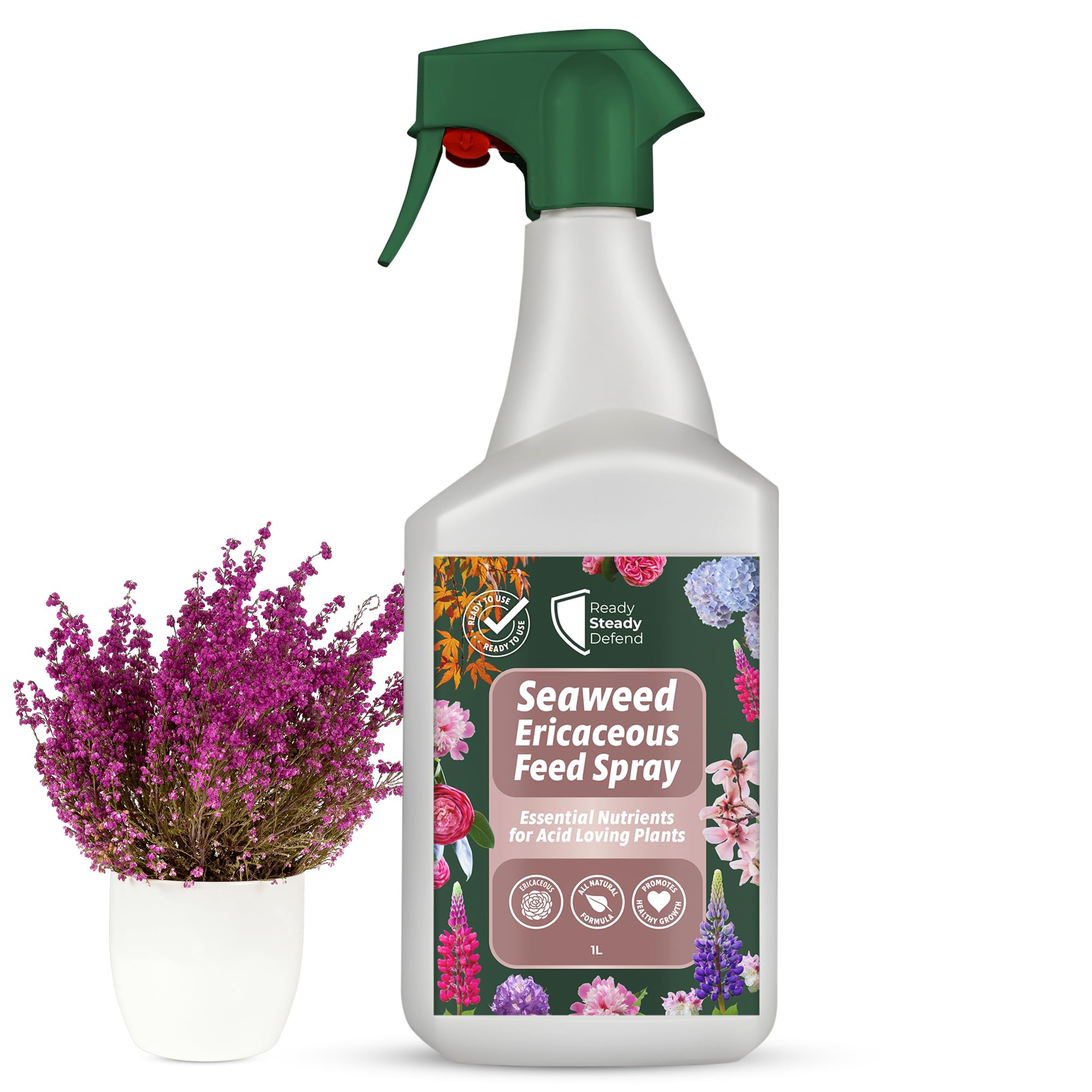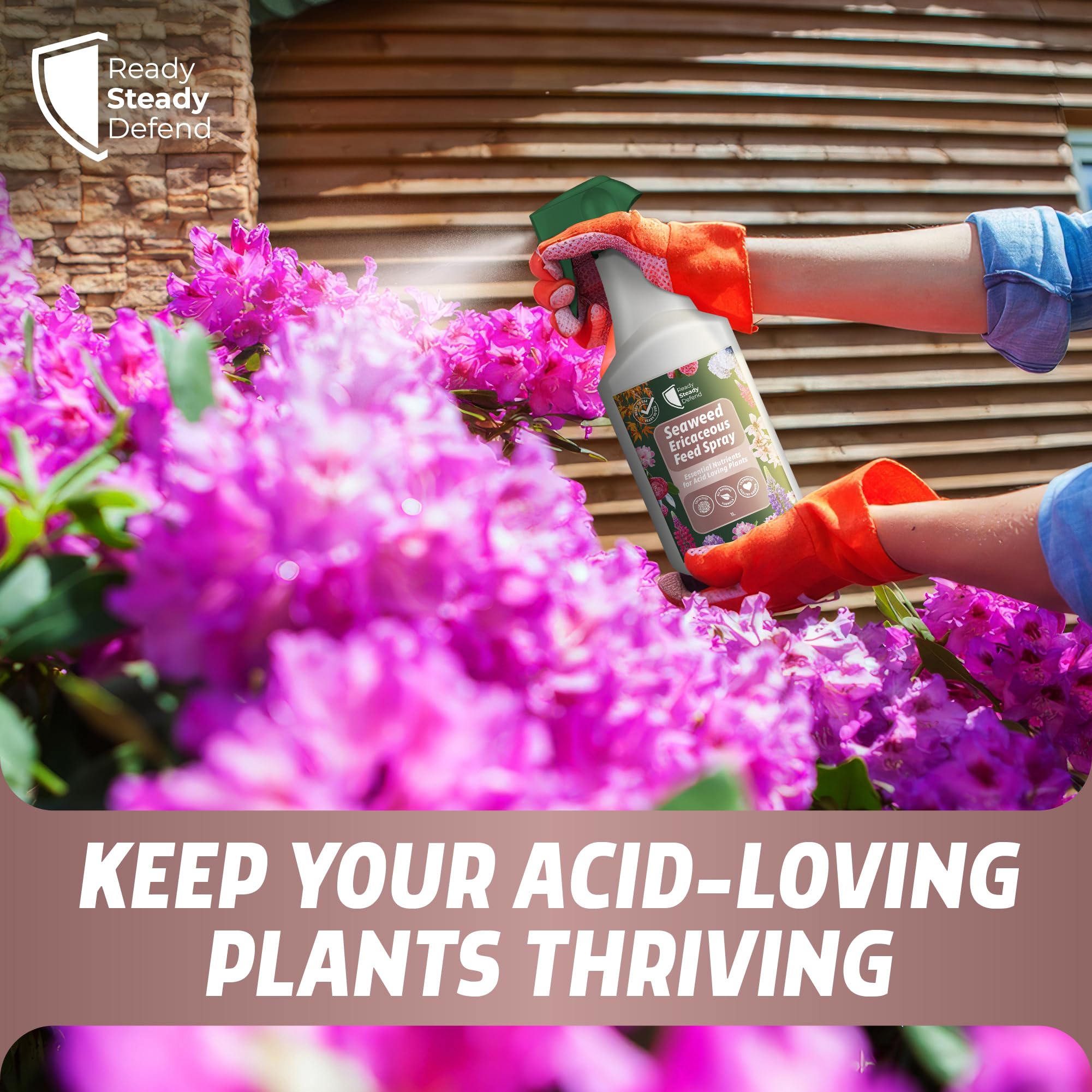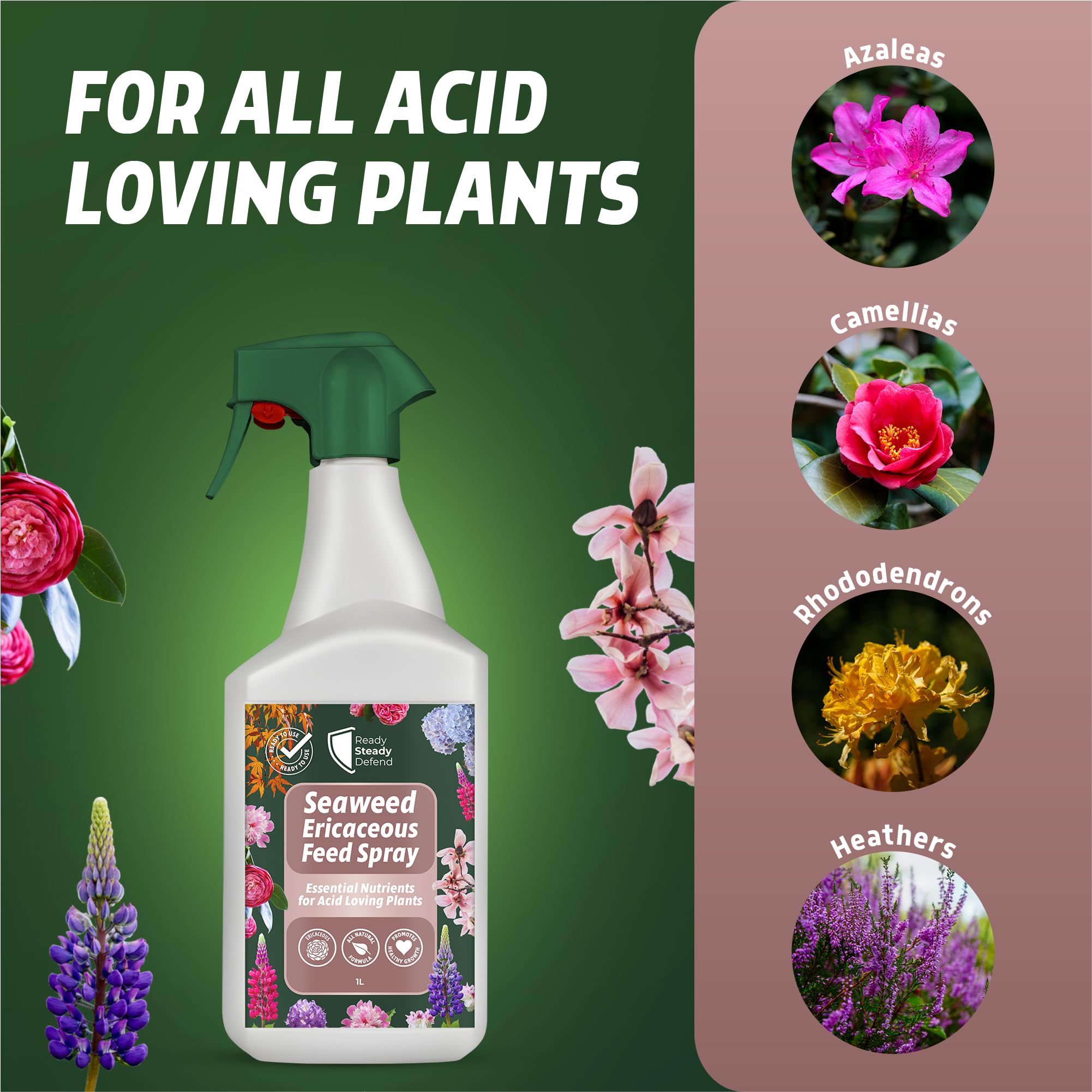 - ORGANIC SEAWEED FORMULA – Ready Steady Defend Seaweed Ericaceous Feed Spray contains pure Ascophyllum nodosum extract, rich in auxins, betaines and cytokinins. Promotes strong root growth, rich leaf colour and vibrant blooms for acid-loving plants year-round.