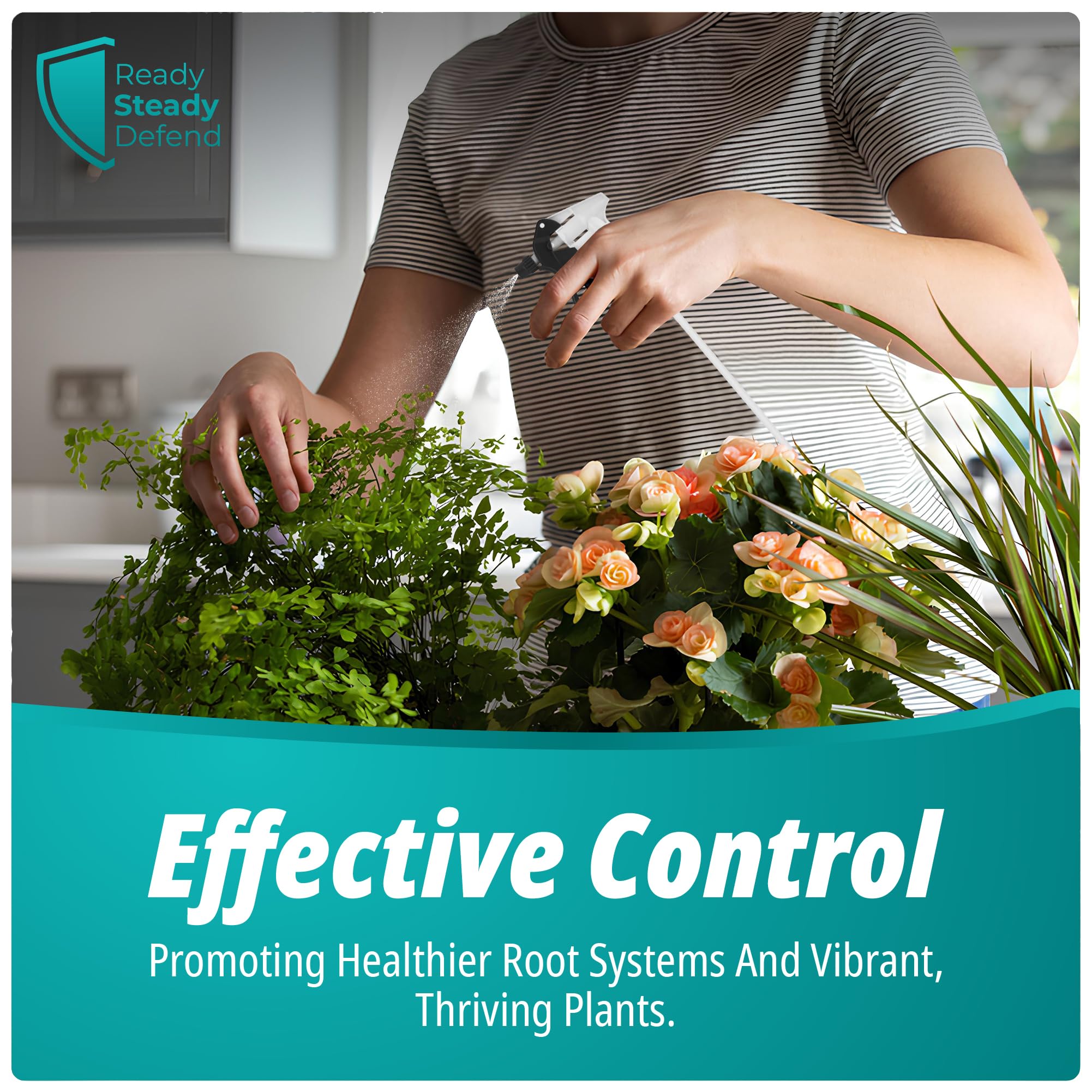 - Protects Roots & Promotes Growth – Targets fungus gnat larvae in the soil to stop root damage and restore plant vitality. Regular use strengthens root systems, prevents re-infestation, and supports lush, vibrant growth for healthier plants and seedlings all year round.