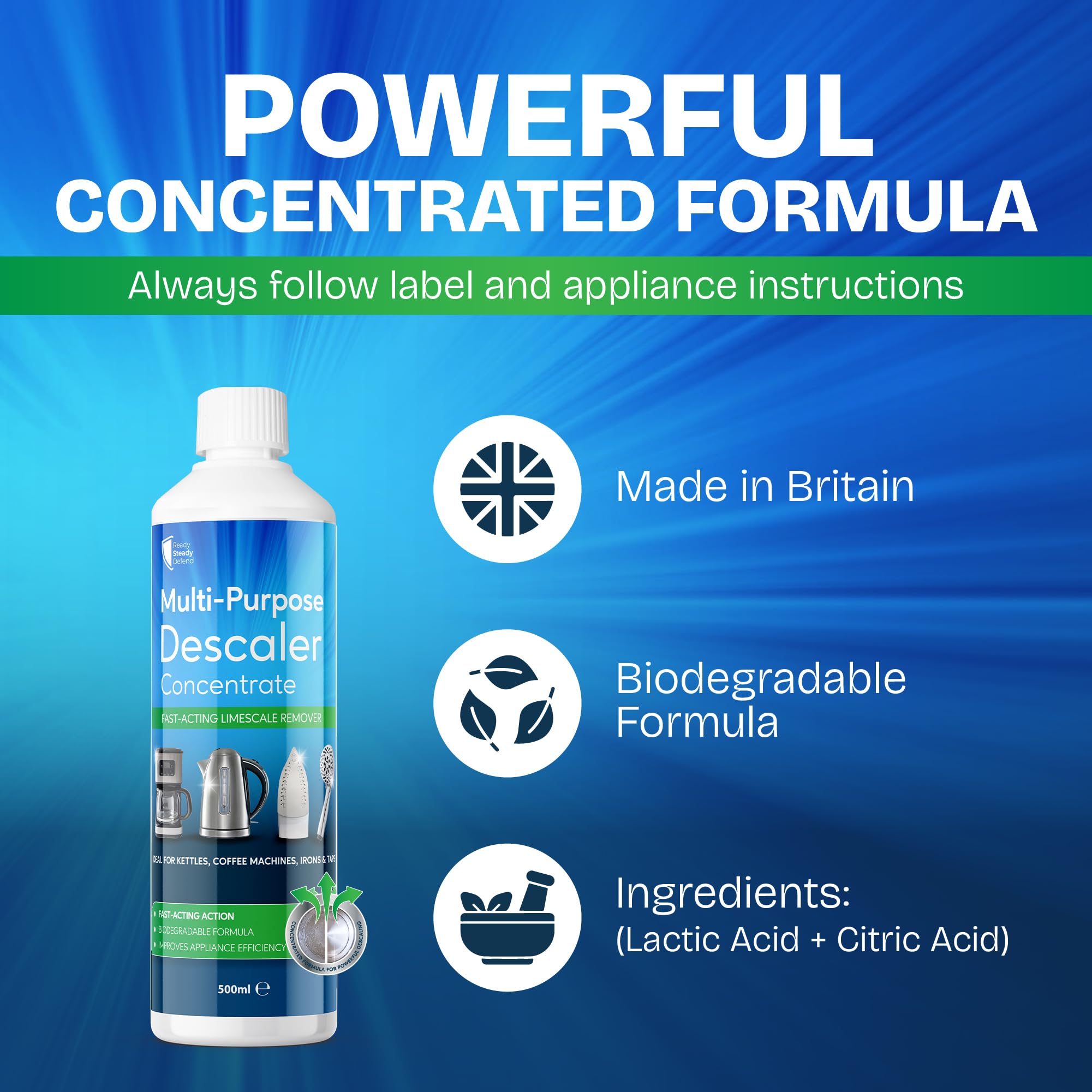 - POWERFUL CONCENTRATE THAT LASTS LONGER - Highly concentrated formula delivers multiple descaling treatments from one bottle, reducing repeat purchases while tackling heavy limescale build up efficiently, helping appliances heat faster, run smoother and maintain performance over time