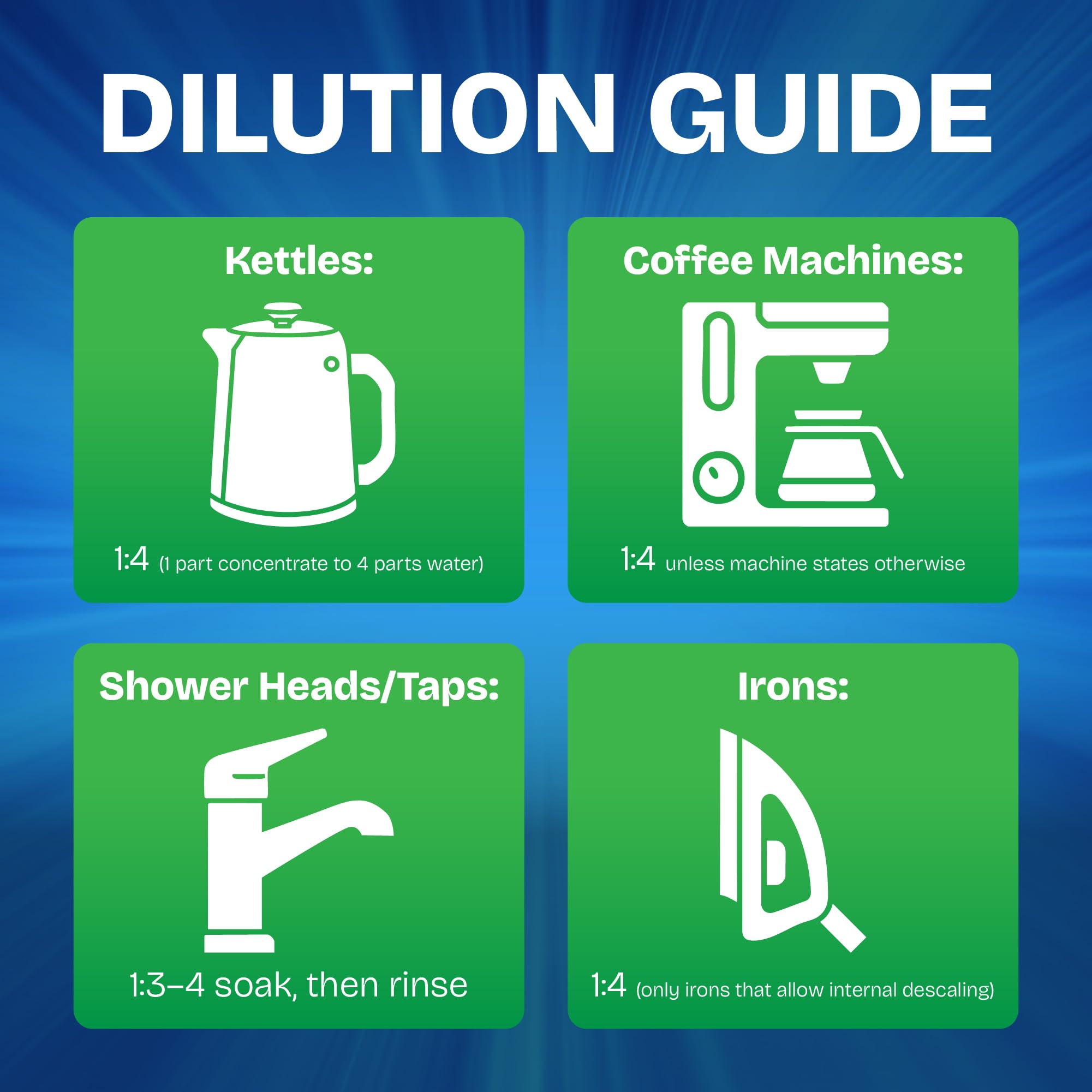 - CONTROLLED USE WITH CLEAR DILUTION GUIDE - Easy to measure and dilute for different appliances, allowing precise application without guesswork, ensuring effective descaling while avoiding overuse, residue build up or unnecessary waste during regular maintenance or deep cleaning