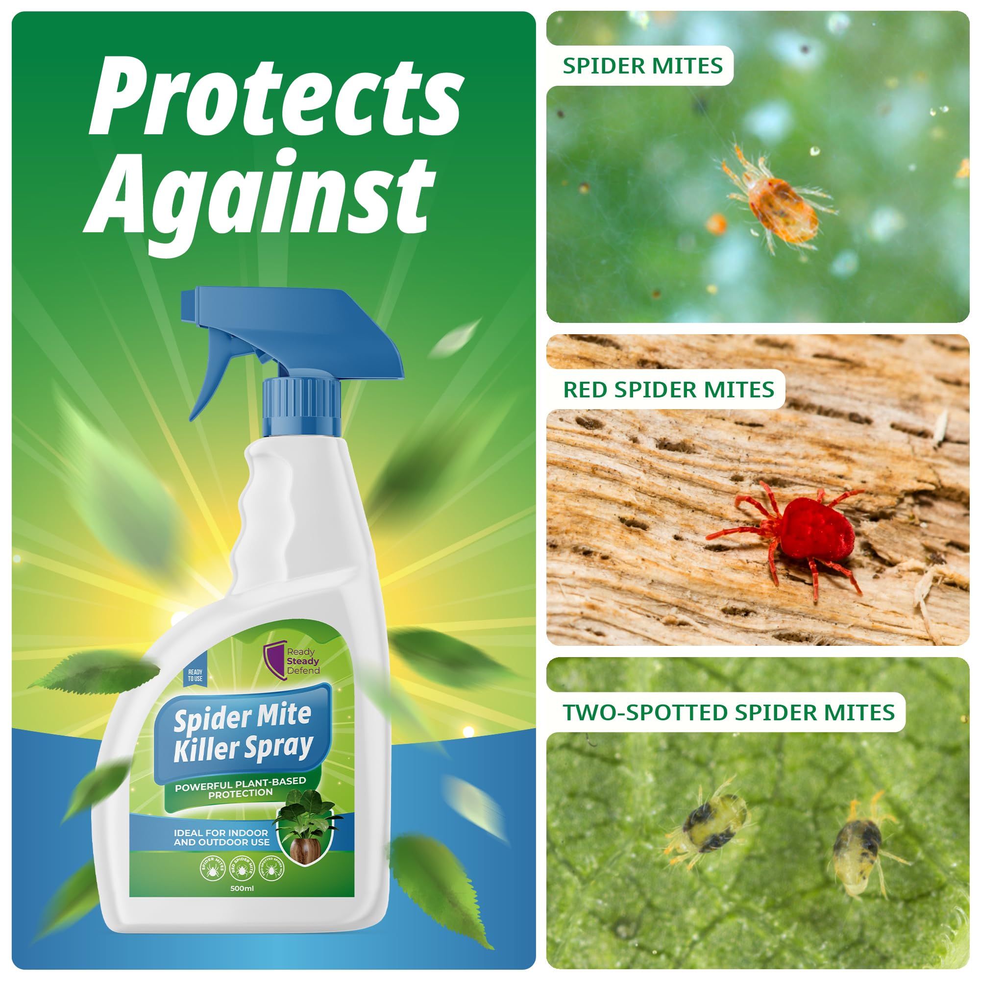 - Effective Spider Mite Control: Our Spider Mite Killer Spray is formulated with natural insecticidal soap using potassium salts and soya oils, effectively targeting red spider mites, two-spotted spider mites, aphids, and whiteflies. Safe for use on indoor and outdoor plants, including fruits and vegetables.